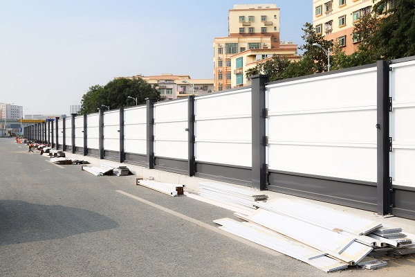 施工圍擋所用材料應(yīng)保證圍擋的穩(wěn)定、干凈、美觀。市政工程項(xiàng)目現(xiàn)場(chǎng),根據(jù)工程進(jìn)度分段設(shè)置圍擋,并按規(guī)定統(tǒng)一使用連續(xù)圍擋設(shè)施。